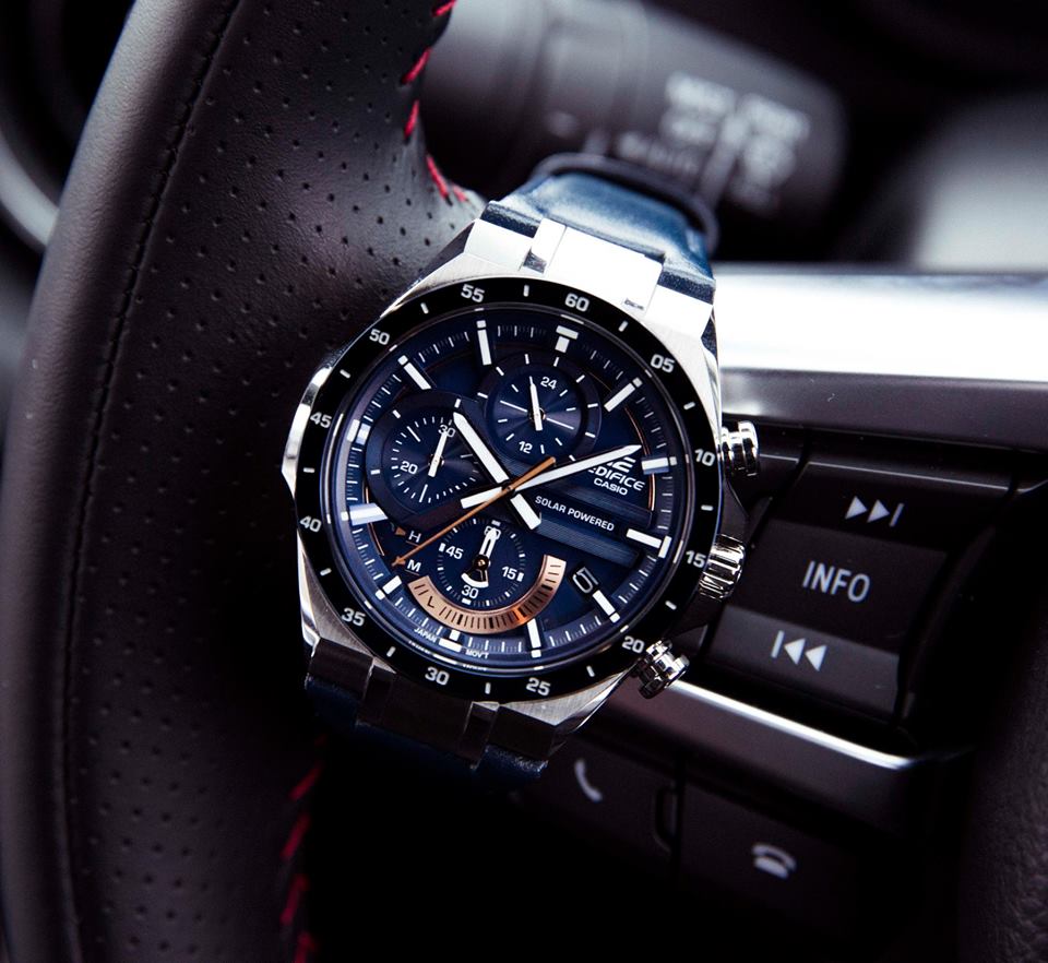 - Edifice EQB-1000D-1AER. Ultra-thin at only 8.9 mm, this men's watch is still one of the best choices for athletes. Precise stopwatch, racing chronograph with extensive memory and lap time comparison, Bluetooth transmitter are just as convenient. In addition to them, there is a proprietary solar battery.