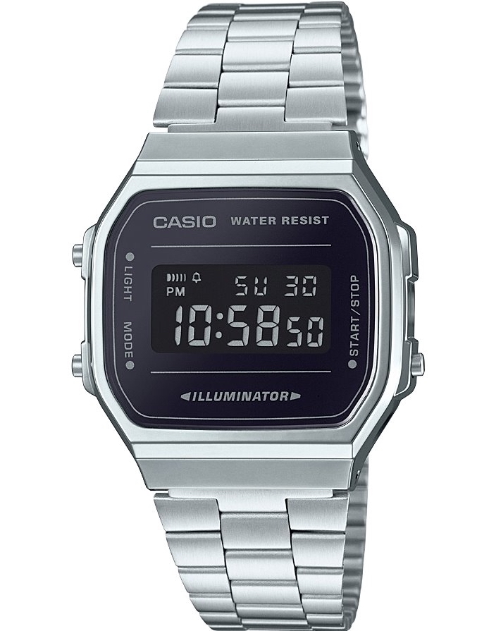 - Casio A158. A classic model of men's watches without an extra set of functions, in a design from the 80s of the XX century, it is produced in the Vintage series. You can choose different colors of the case and the micro-screen backlight. Despite the plastic case, the model looks quite decent, it is liked not only by connoisseurs of retro.