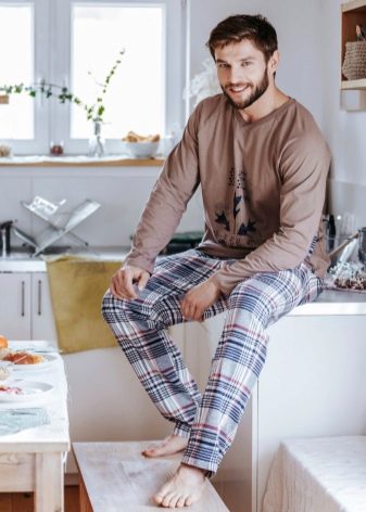 Men's home clothing includes robes, tracksuits, T-shirts with shorts, soft trousers and even thermal underwear. It is desirable that the representatives of the stronger sex have at least one of the presented dress options in their wardrobe.