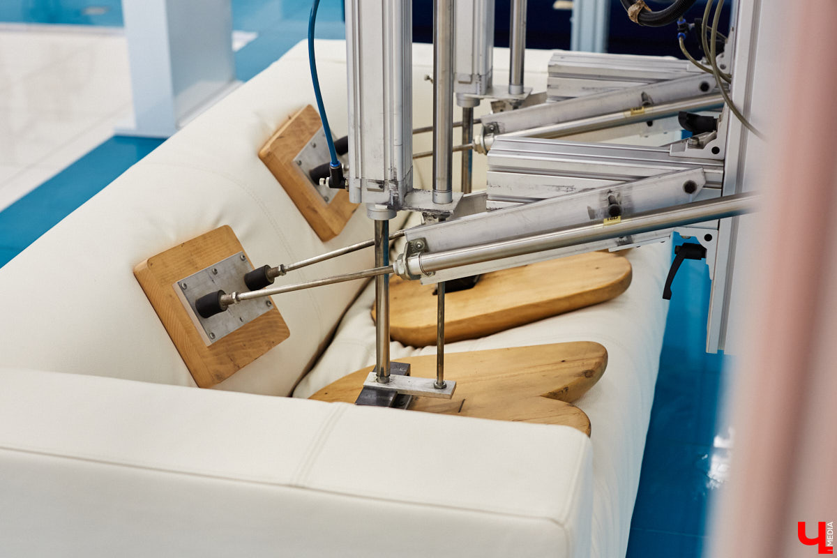 Edge stiffness test... First of all, it is this part of the mattress that is deformed. Hard edges prevent a person from falling out of bed while sleeping. The company uses a special machine that simulates a seated person on the edge of a mattress. A load of 150 kg is placed on the surface.