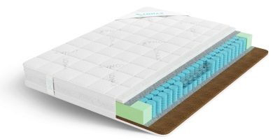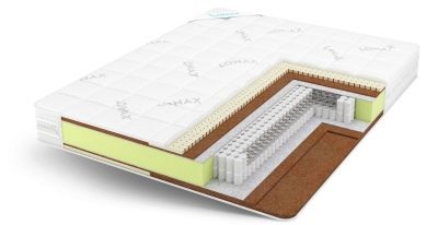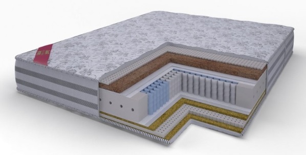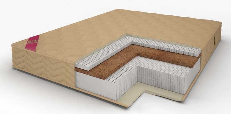 The main material is artificial latex, which is 18 cm thick. Natural coconut coir and memory are used to give special properties. Due to them, high and low rigidity is achieved, respectively.