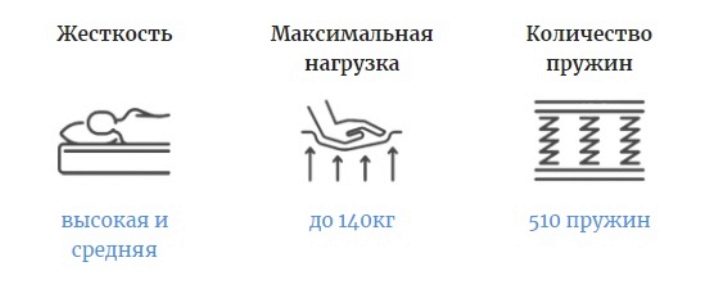 This proposal is characterized by the fact that one side of the mattress has high firmness, the other - low. The representative of the line is the Foam Cocos Memory 2 Max Plus model. It is designed for a maximum load of 140 kg.
