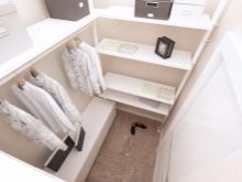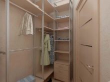 In a two- or three-room apartment of a large area, you can plan a dressing room adjacent to a bedroom or a bathroom. In a one-room apartment, only an entrance hall (corridor) or a balcony can be suitable for this purpose. If we are talking about the old "Khrushchevs", then in this case it is possible to remake into a small dressing room 3 square meters basically only the pantry, without sacrificing the rest of the square meters.