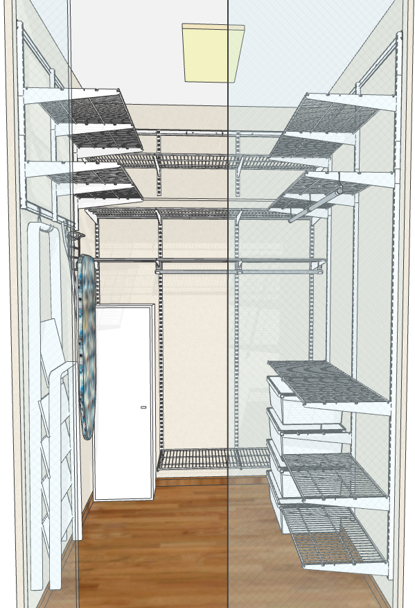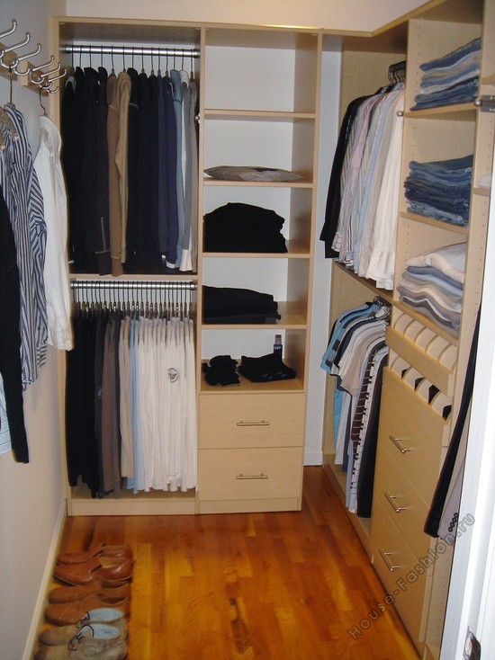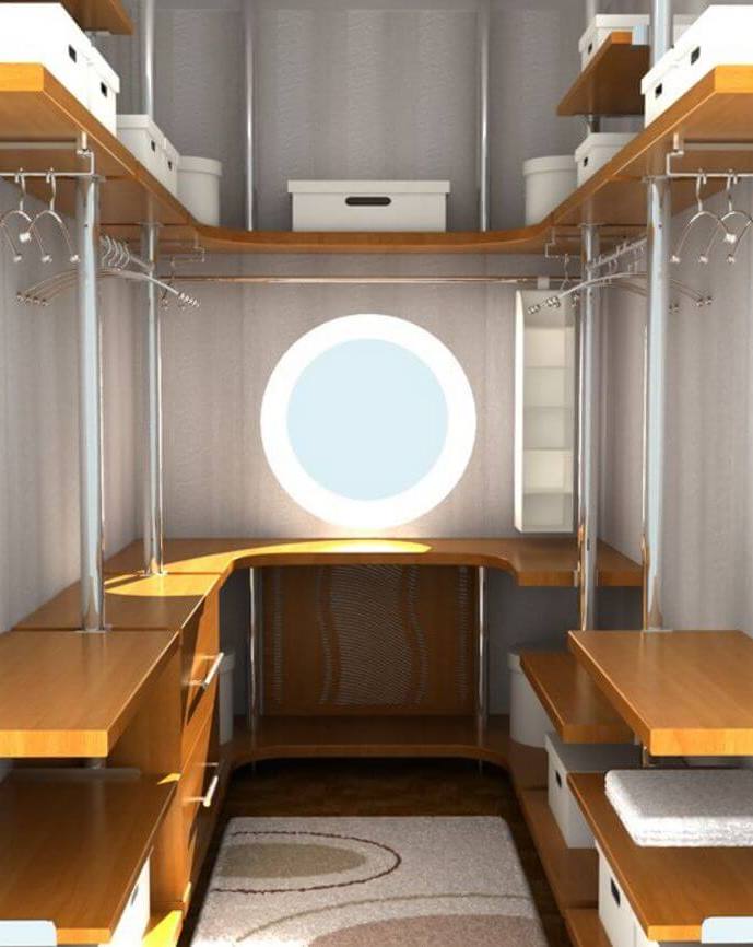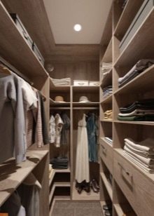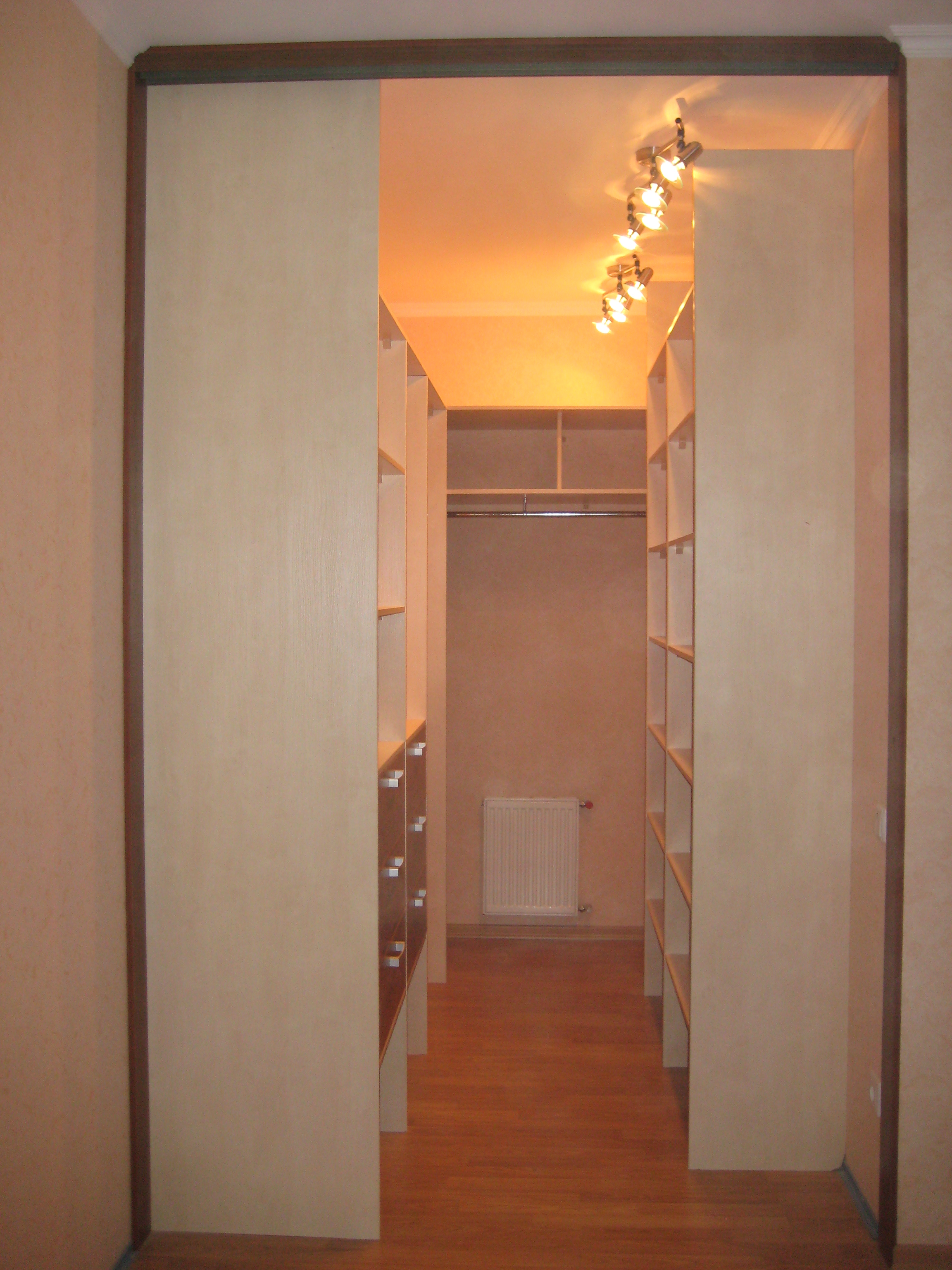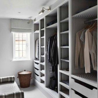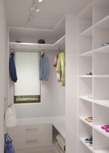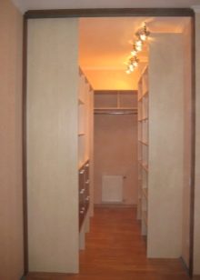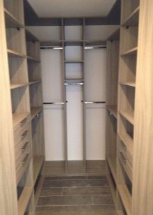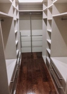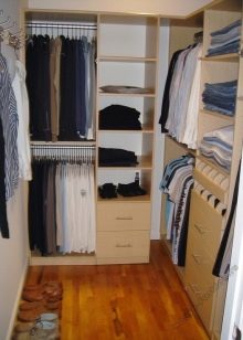 Parallel. It is quite difficult to make a full-fledged dressing room according to such a layout, since the racks must be installed on opposite walls. If there is very little space, the dressing room will turn out to be rather narrow.