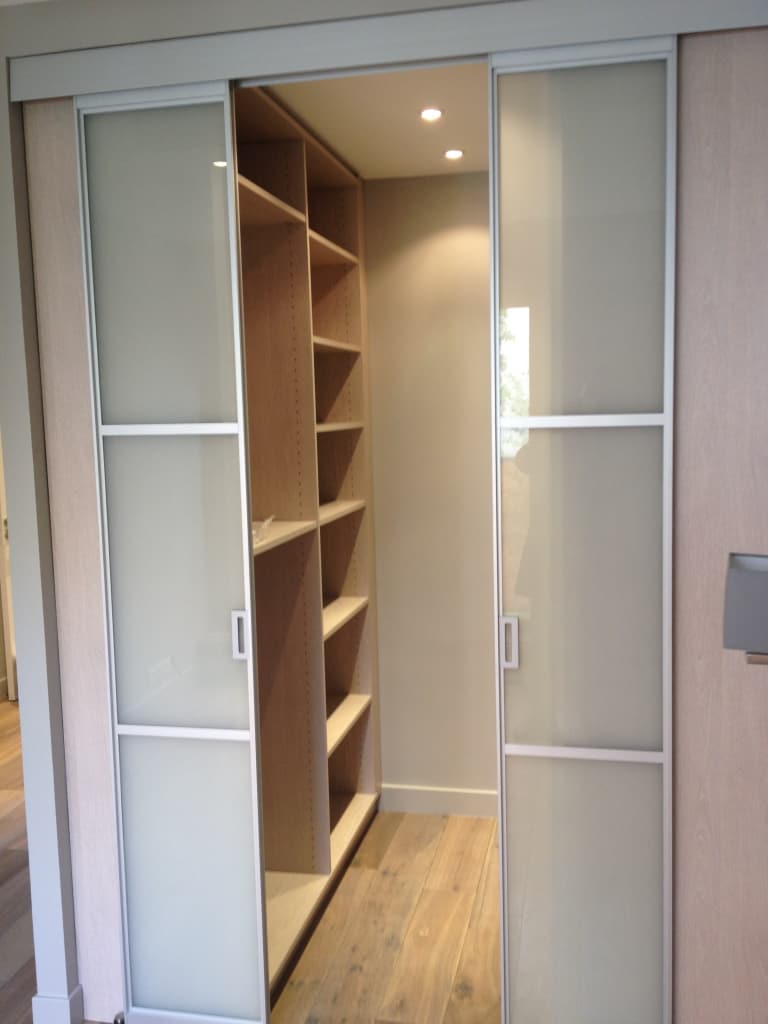 Sliding doors are the most popular and optimal for a small dressing room, and all thanks to their practicality. It is worth noting that when installing a sliding door in a dressing room inside the dressing room itself, it makes sense to install only open racks and shelves, for example, along the wall. Of course, there is no need to install a cabinet with one more door. It turns out that by opening the compartment door, a person will immediately get to all the necessary things.