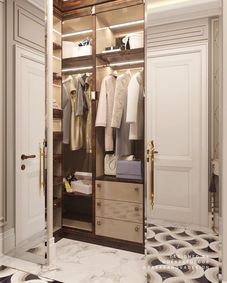 In general, for inspiration, you can pay attention to numerous other examples of successful dressing rooms located in a small area. They will surely help you decide on your future dressing room.