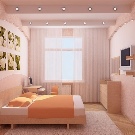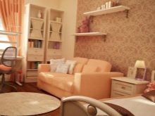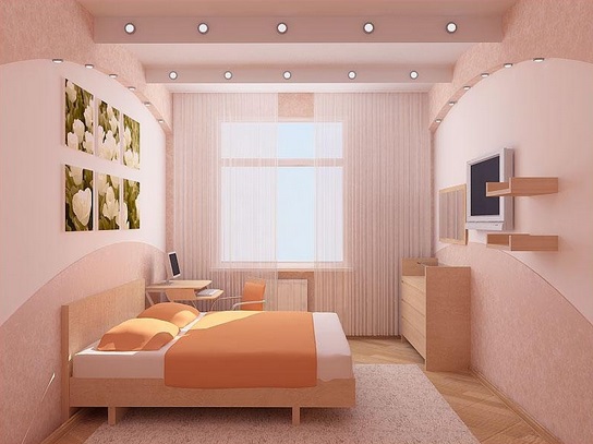 If the room is small, then it is worth considering the Scandinavian style, which combines the use of natural materials, delicate peach, pink and beige shades and a small amount of furniture.