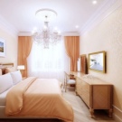 Classics are popular when decorating an apartment in any color, peach is no exception. The designer's goal in this case is to create a calm and austere environment that looks luxurious at the same time. It is important to maintain clear proportions, it would be useful to use straight lines (as in hi-tech), but the color scheme is much softer here.