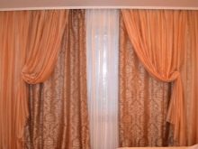 - thick classic curtains in dark colors, such as chocolate or coffee, look great with light peach-colored curtains.