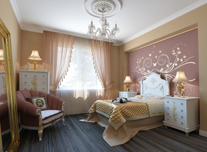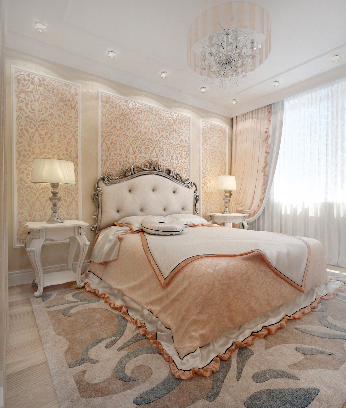 - Neoclassicism is a great way to create a modern and luxurious ambience in your bedroom. Furniture can be either the same color as the wallpaper, or several shades darker. You can attract attention by using decorative panels or paintings.