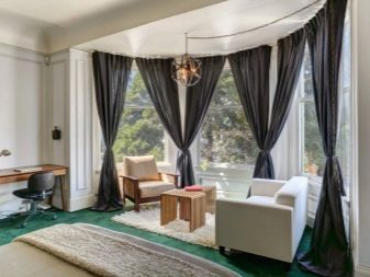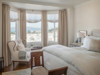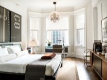 The design of a bedroom with a bay window does not tolerate trifles, even if "only" they choose curtains for the bay window. The interior of a room with a workplace in a bay window may also be very interesting. There are other design options that also need to be carefully studied and disassembled.
