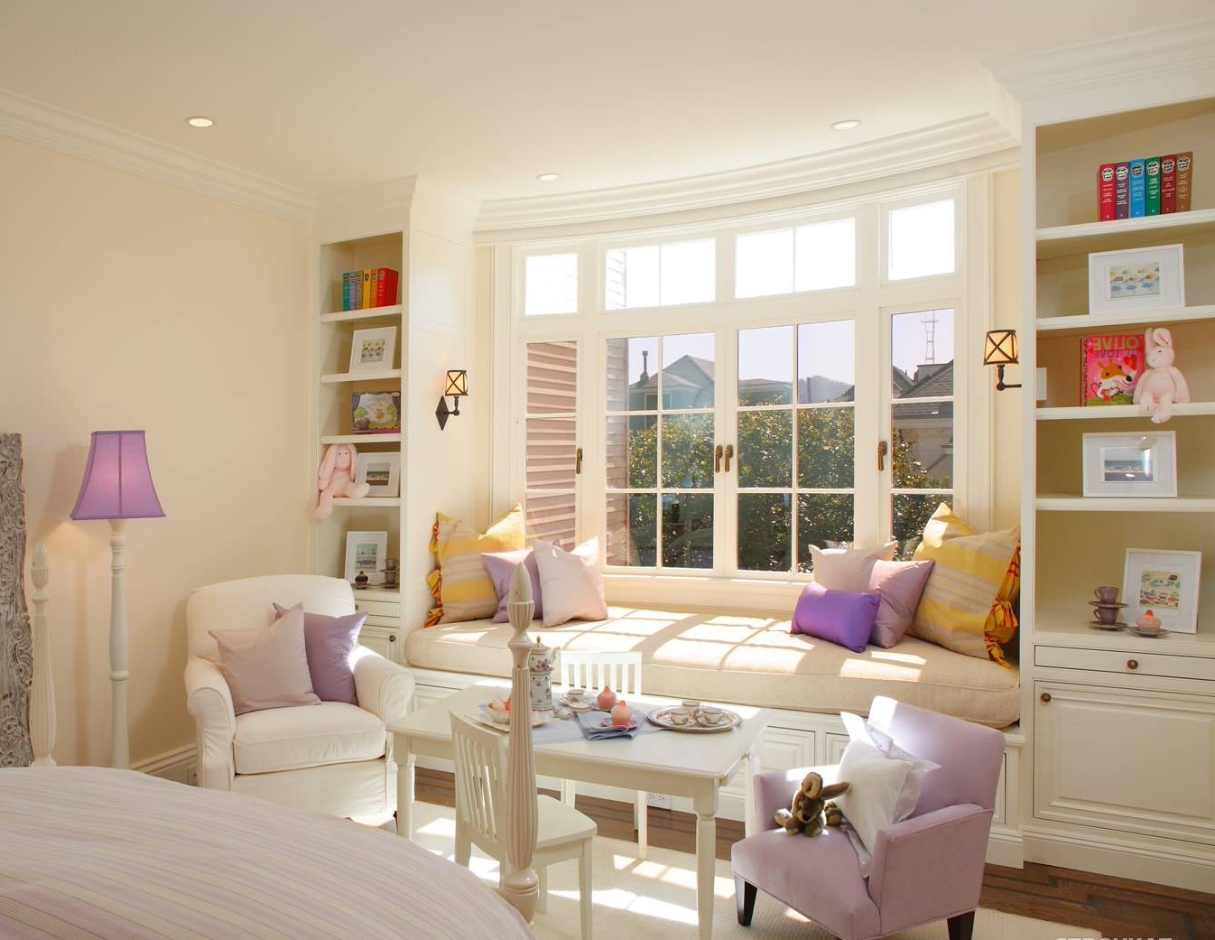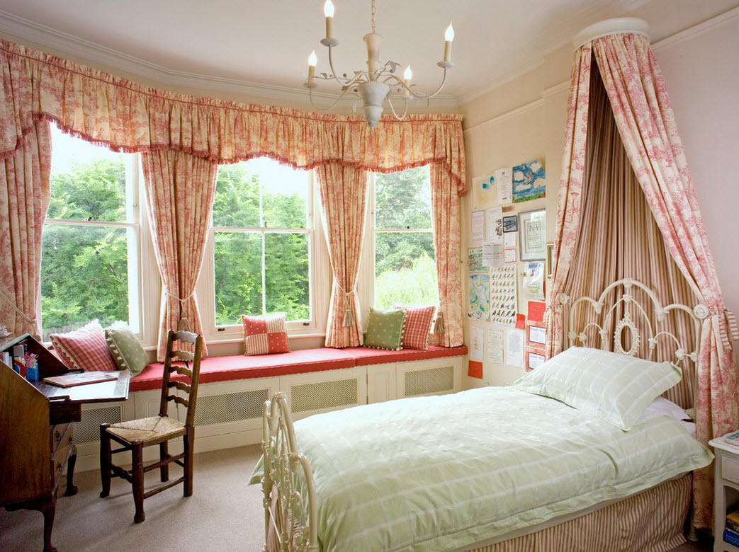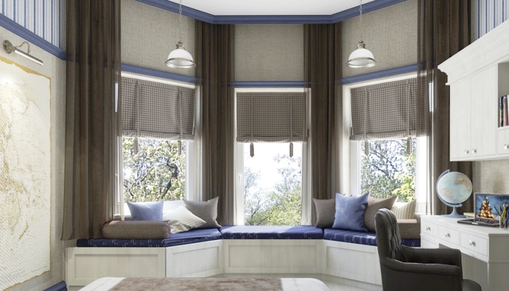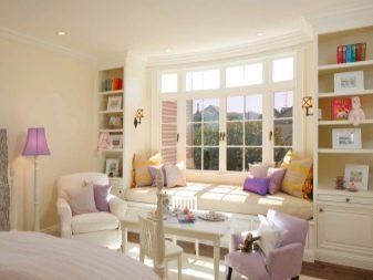 If the bedroom is reserved for children or adolescents, it is advisable to put a bed with large drawers for storing bed linen and other things directly next to the bay window.