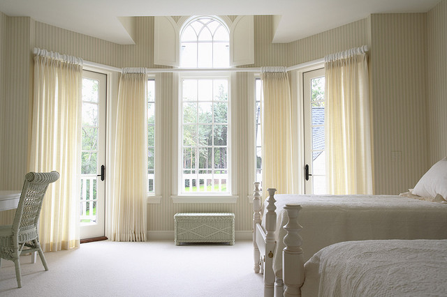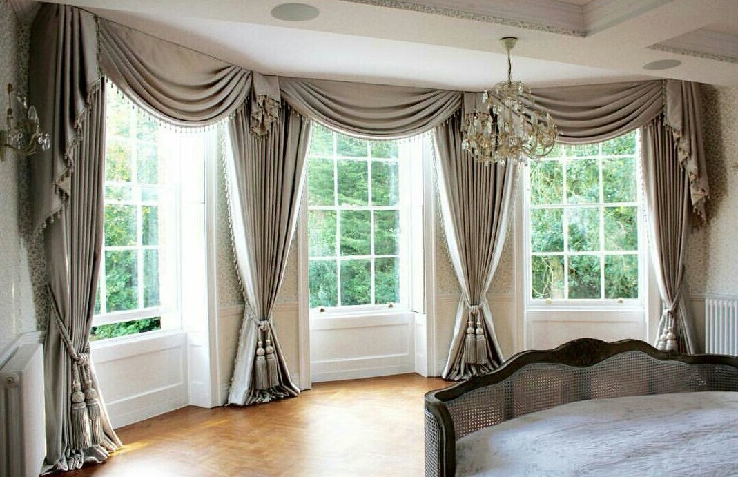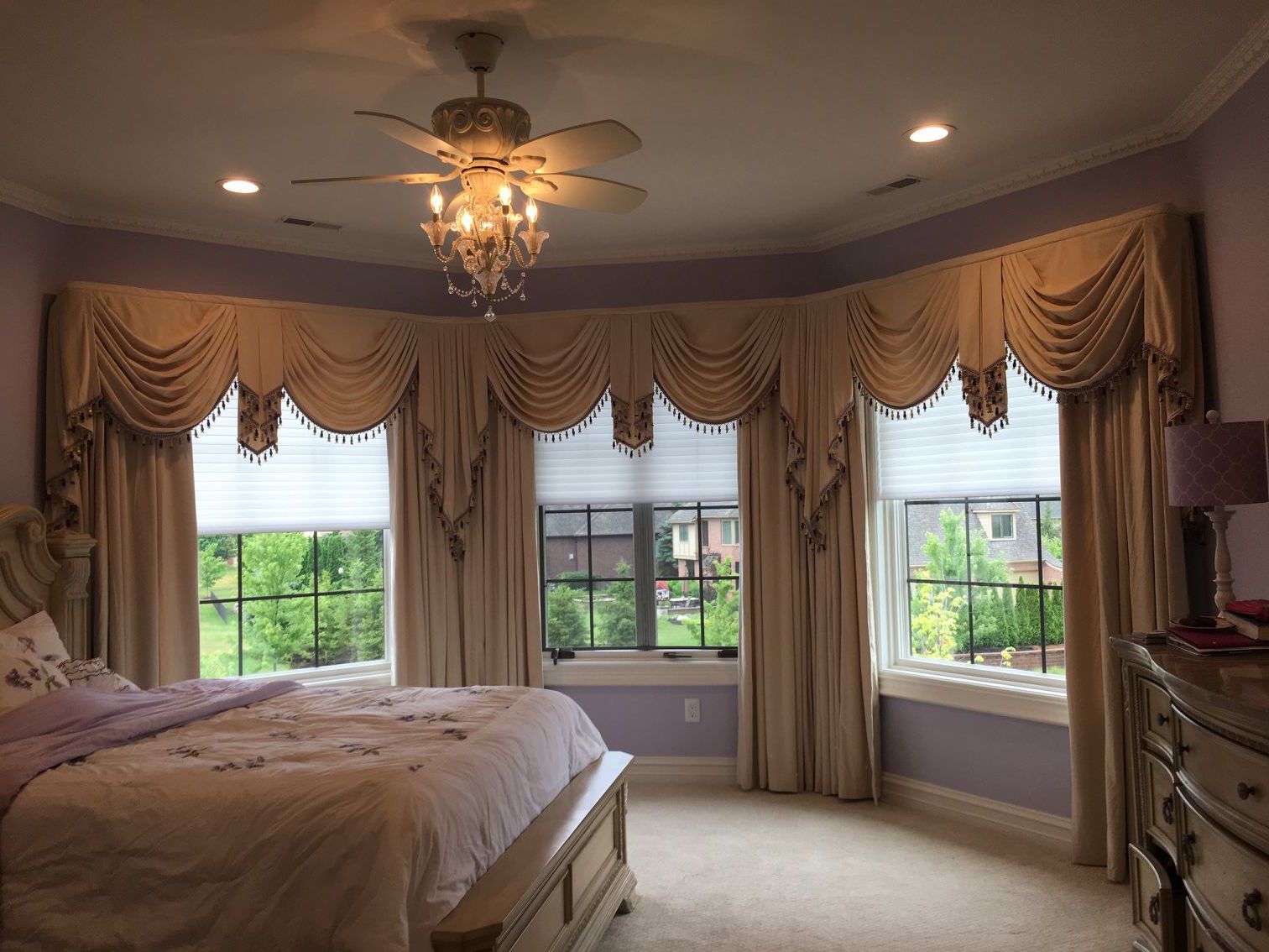 - a round bay window is nice to decorate with continuous canvases on flexible cornices.