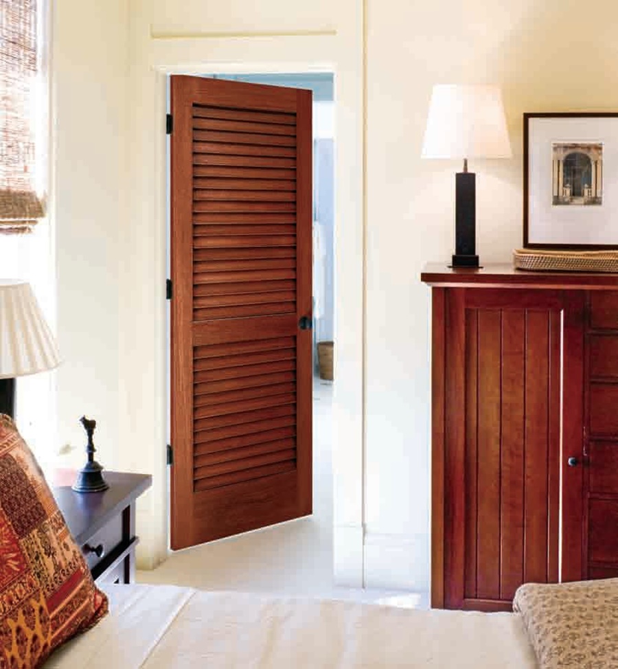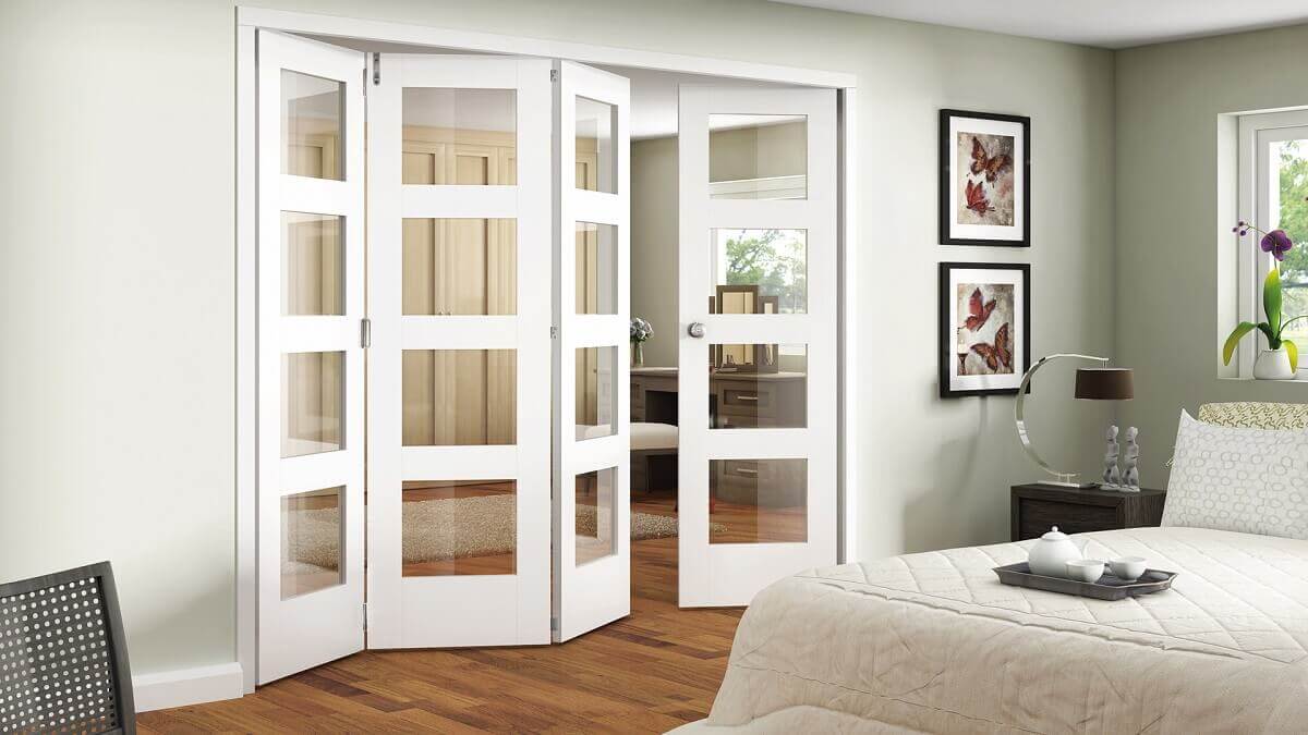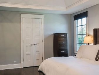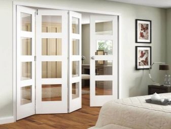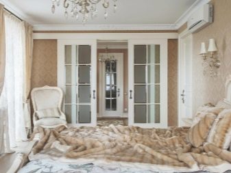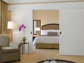 - Louvered. The least successful for the bedroom, as they have a folding structure of two halves that fold like an accordion. The disadvantage for the bedroom will be the presence of a lattice fabric, similar to blinds. Due to this design, sounds, light and smells from other rooms penetrate into the room, there is no way to retire.