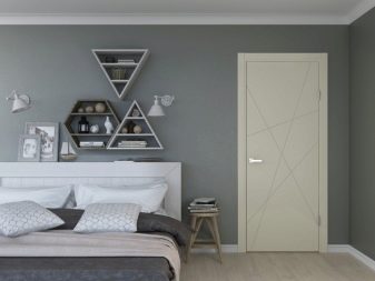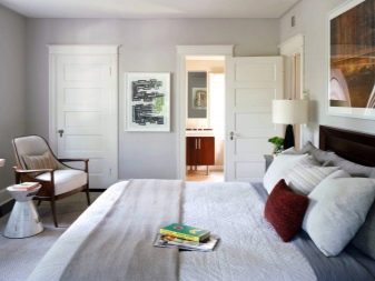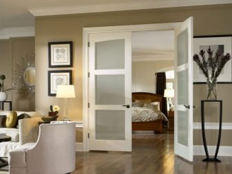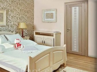 - Color and design - white or light doors are usually installed in the bedroom, which do not stand out from the general concept of the room.