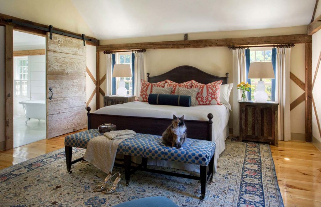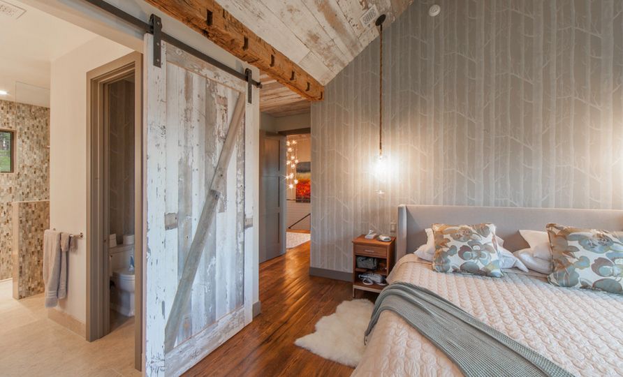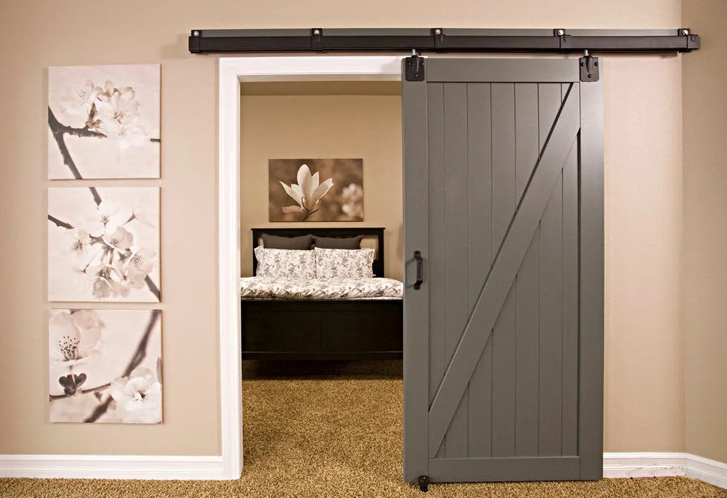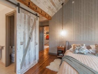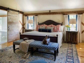- Country - style with a rural, suburban direction. The bedroom can be completed with double doors or an accordion cloth. The color scheme can be different - light doors will fit into the room in warm colors, dark ones are preferable for contrast and highlighting zones.