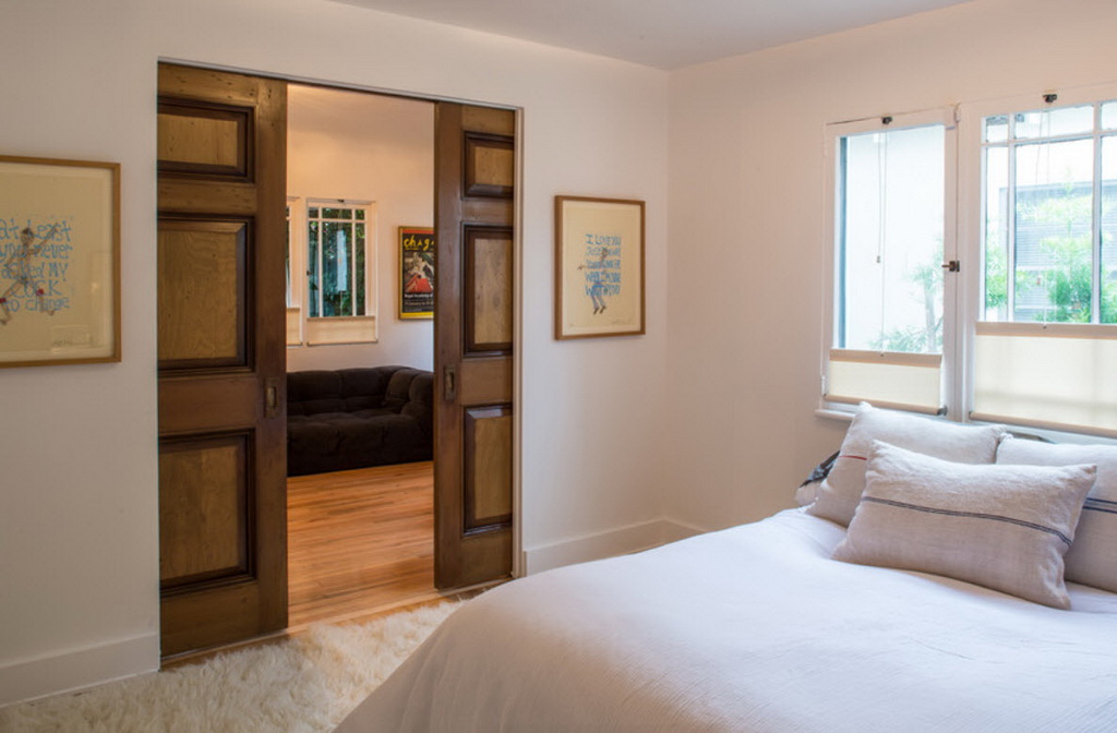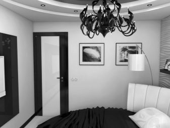 The size of the doors allows them to organically fit into the wall of any standard bedroom. If the room is small and the door is located in the corner, then it is recommended to use a swing structure. In a spacious room, where the doorway is in the middle of the wall, a sliding or double door is ideal, which does not take up the useful area of the bedroom.