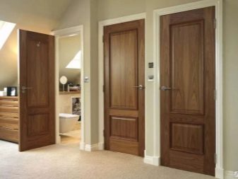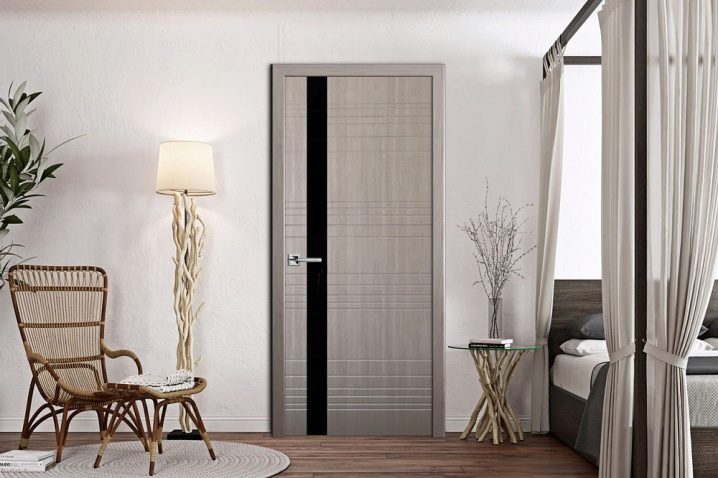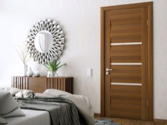 There are varieties that are covered with veneer, which makes their appearance almost indistinguishable from natural wood doors. To create an original door leaf, glasses can be used, which are inserted into niches specially designated for them.