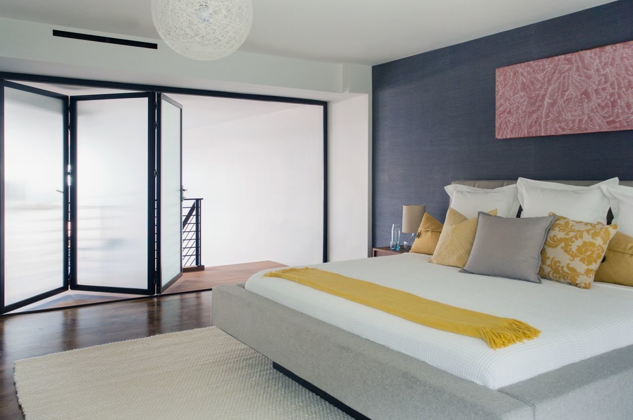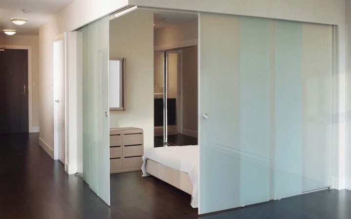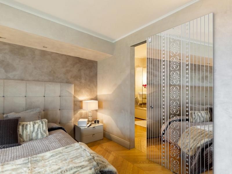 - Glass doors allow maximum light into the bedroom. They can be made of clear or frosted glass.