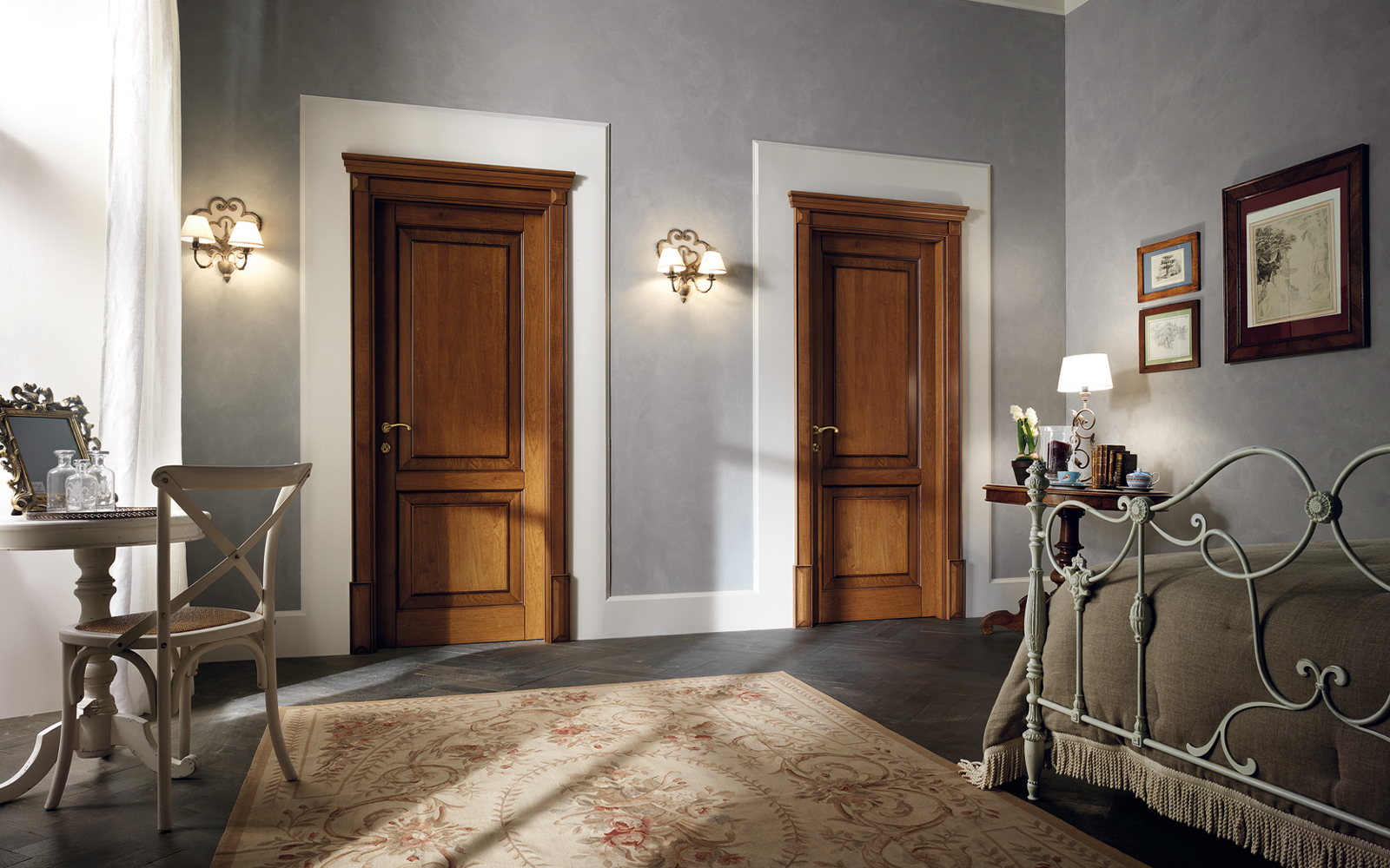 - Classic - decor with a minimal number of elements, with simple shapes and lines. White or wooden door colors are used.