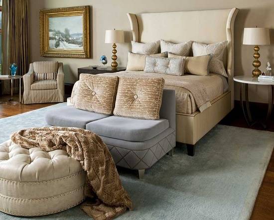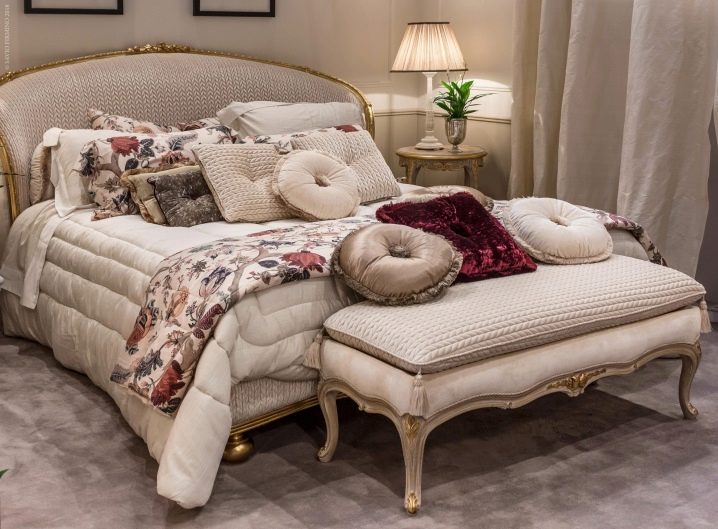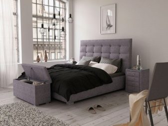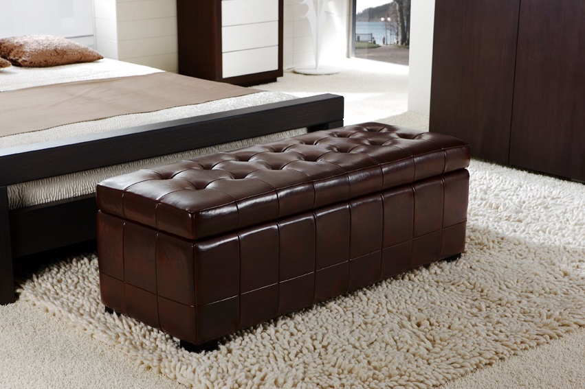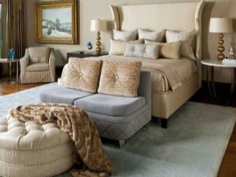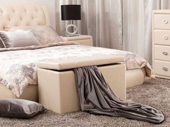- Bedroom size... In a spacious room, it's easy to afford many more options and options. Here are good and soft decorative products of any shape, and voluminous poufs, chests, and roomy banquettes. In a small bedroom, a classic streamlined ottoman is appropriate, without sharp corners with additional storage space.