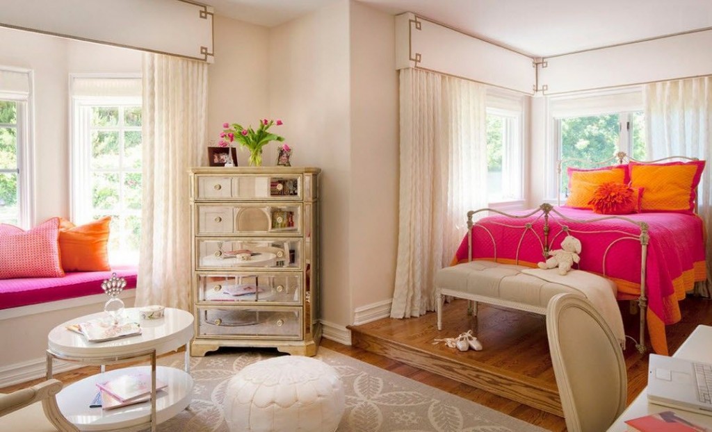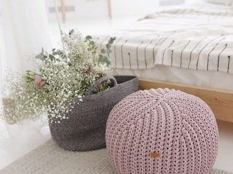 - Purpose... Think about the purpose for which you are purchasing the furniture. Whether the pouf will simply serve as a decorative addition to the overall ensemble of the bedroom or will play an important role in the interior: it will become an additional place for sitting or rest at night, will serve as a footrest for a folding sofa or armchair, allowing you to take a comfortable body position after a working day, will be a place for storing things ... It is advisable to purchase soft frameless structures with a dense, reliable cover for the children's bedroom, which do not pose a threat to the health and life of the child. A product of any design is suitable for an adult bedroom. The main thing is that the pouf does not interfere with others, and its color, texture, size and design are in harmony with the created interior composition.