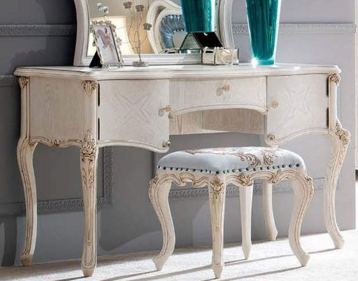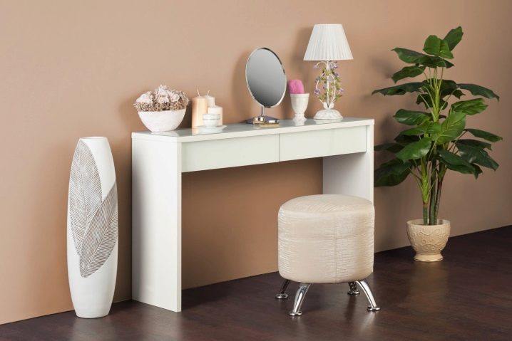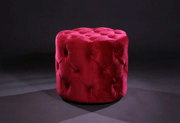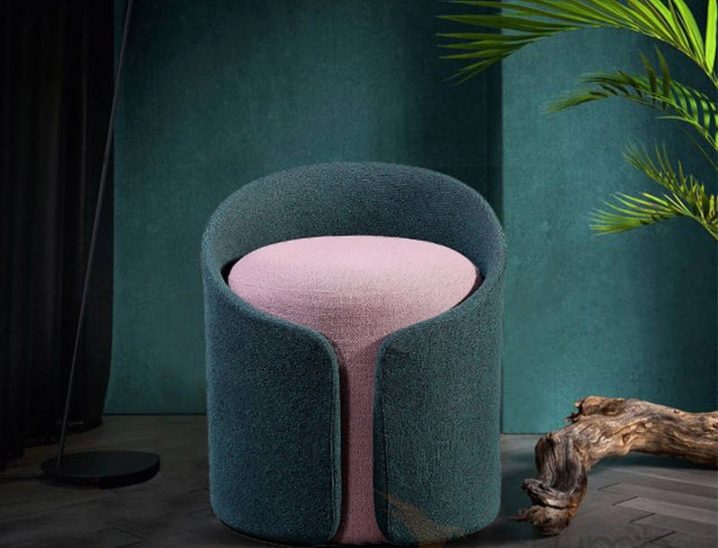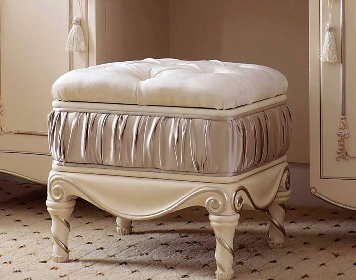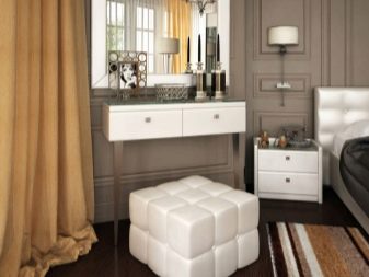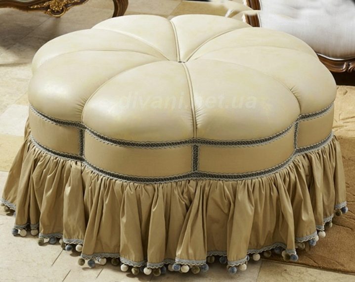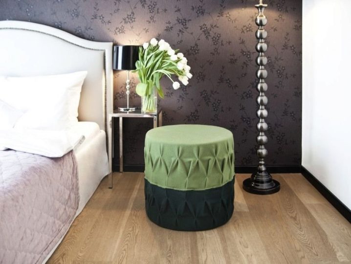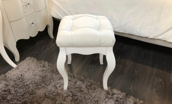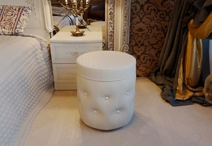 A beautiful pouf for a dressing bedside table can become not only a place to relax, but also the pride of the hostess.