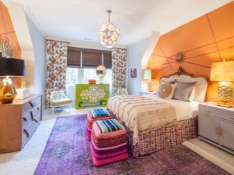 - Style... The choice of color and material of the product depends entirely on the style of the bedroom.Classic monochromatic accessories with strict shapes will be ideal for a bedroom in any solution: from strict classics to clear and laconic hi-tech. Floral print - for light airy boudoirs in Provence and shabby chic style. The Moroccan-style ottoman is suitable for ethnic motives. Unusual design solutions in the form of hamburgers, caterpillars, soccer balls and emoticons will be the main decoration of the children's room.