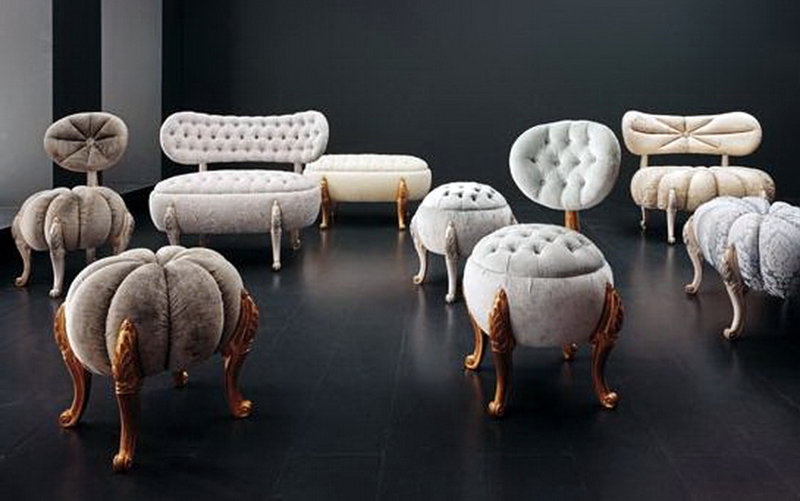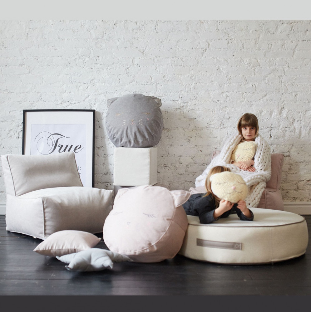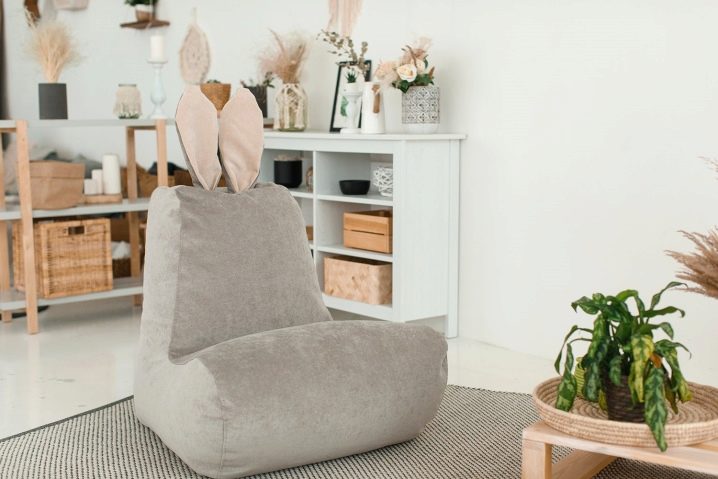 Poufs come not only in the form of pillows and bags, but also in the form of figures of animals, fruits, cars and flowers.