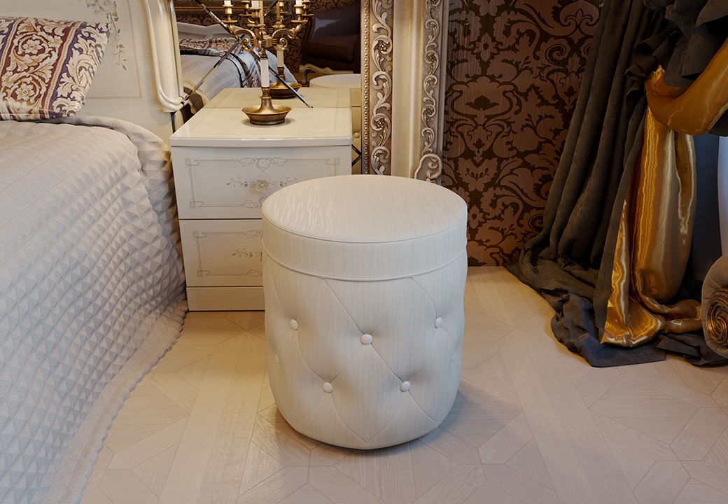 - Large roomy white pouf will help you feel free to receive guests in the bedroom.