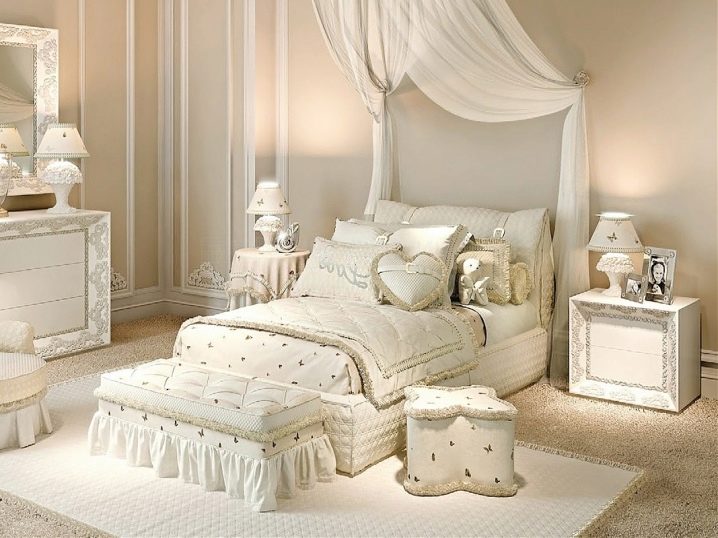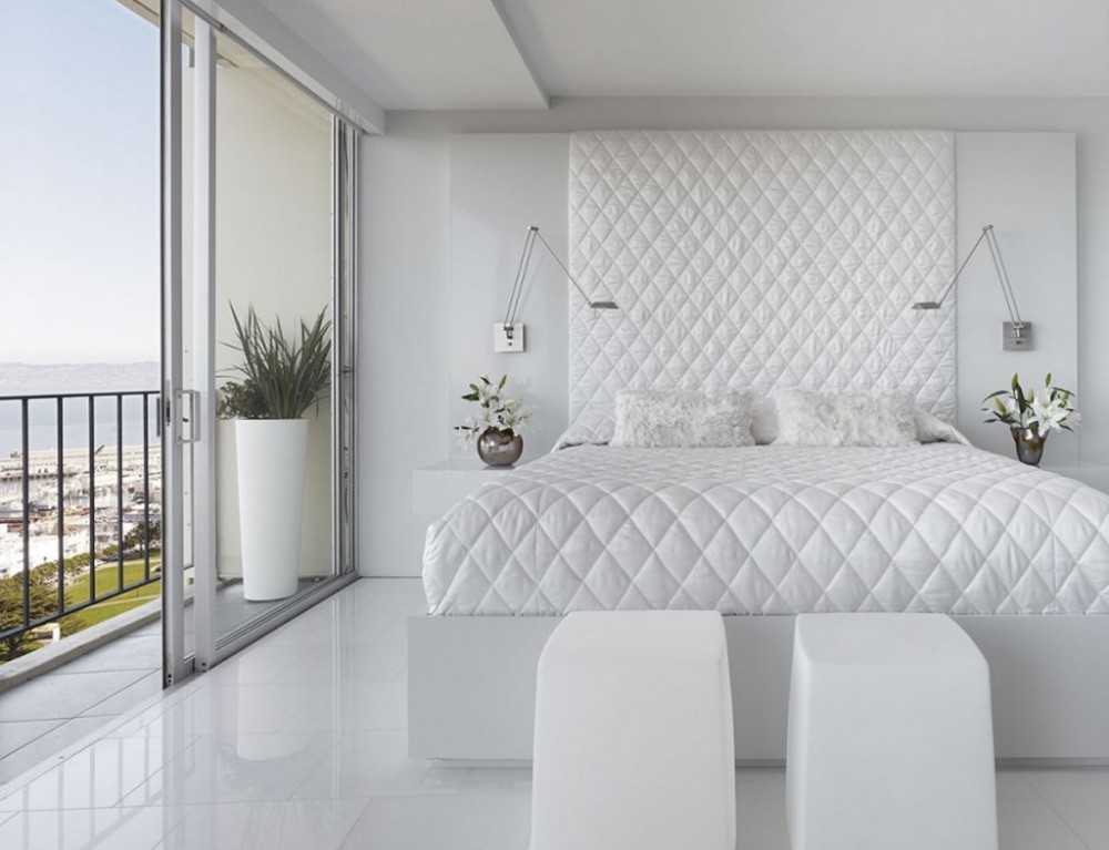 - Little butterflies, fluttering on the snow-white banquettes, add even more tenderness and airiness to the bedroom with a white suite.