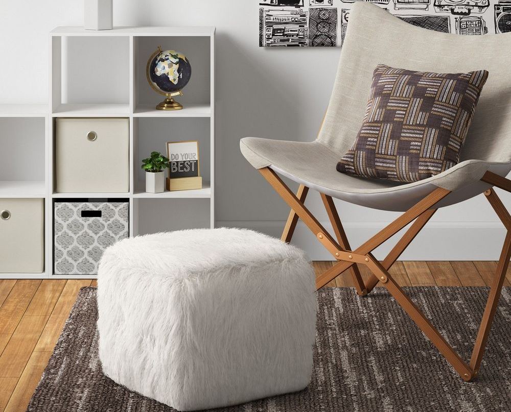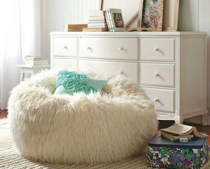 - Fur white pouf kids will love it very much: you can curl up in it and fall asleep.