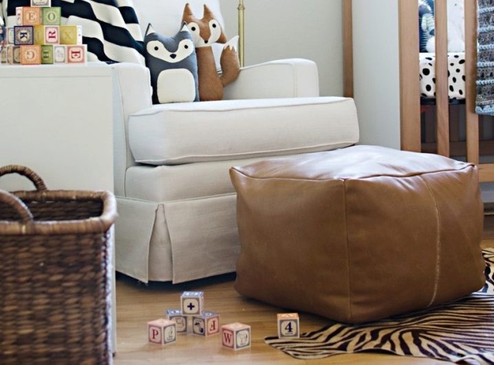 - Leather frameless pouf in the children's bedroom - an irreplaceable thing for parents. You can put it under your feet and rest a little.
