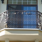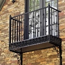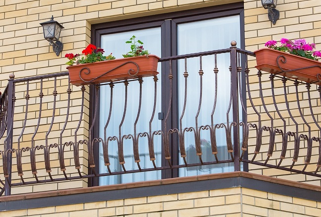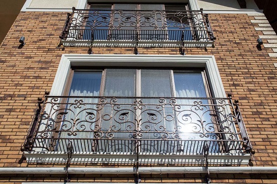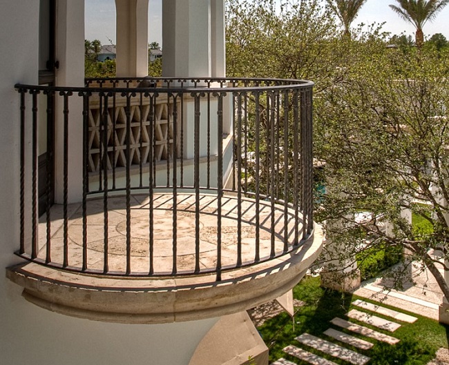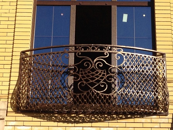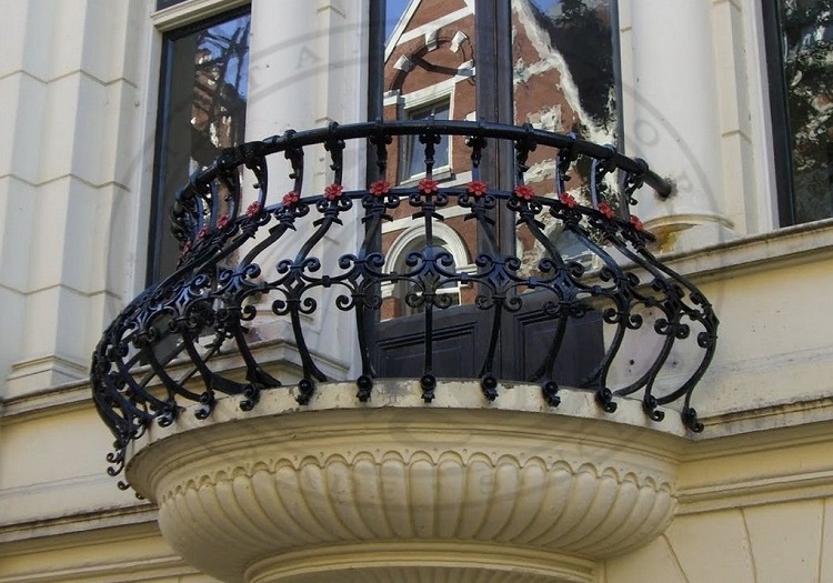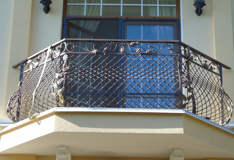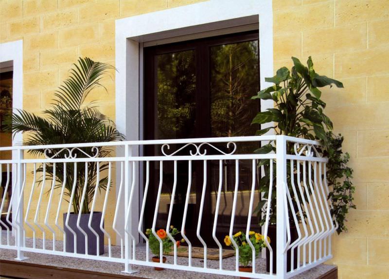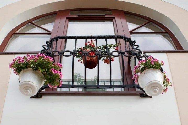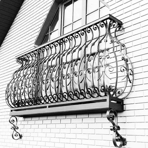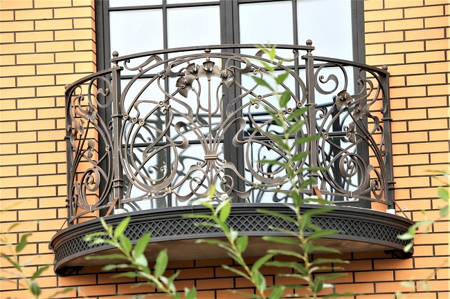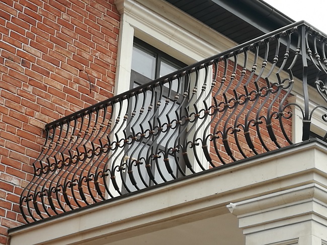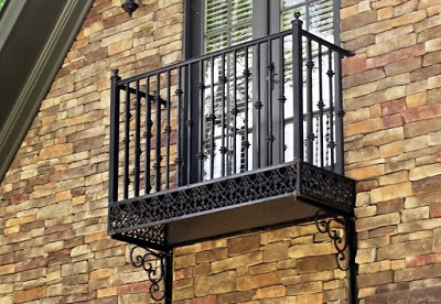 You cannot go out to such a balcony, but it is quite possible to place flower pots. Openwork forging often looks like a voluminous basket and is the hallmark of the French balcony. In addition to the decorative function, the metal fence serves as a reliable barrier and ensures the safety of residents.