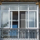 Over time, the classic French balcony was transformed and dressed in glass. The modern version is represented by panoramic glazing, installed either in the window opening or along the outer perimeter of the site. There is a forged railing on the outside or inside of the glass. On some balconies, forging may be absent: instead, the lower part of the glass is matted, tinted, covered with a mirror coating or framed in a plastic apron.
