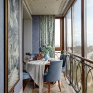 - Panoramic and stained-glass glazing options contribute to the creation of the illusion of open spaceblur the boundaries between the room and the cityscape. This is especially noticeable when the building is surrounded by green spaces, the crowns of which are located at the level of the balcony.