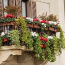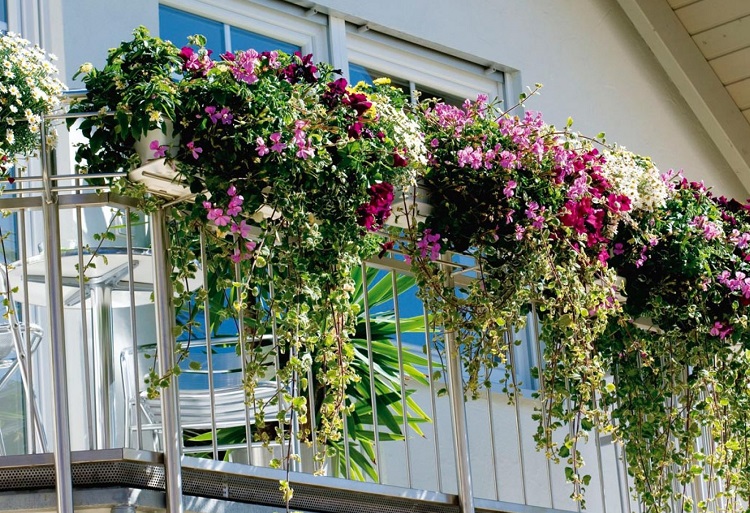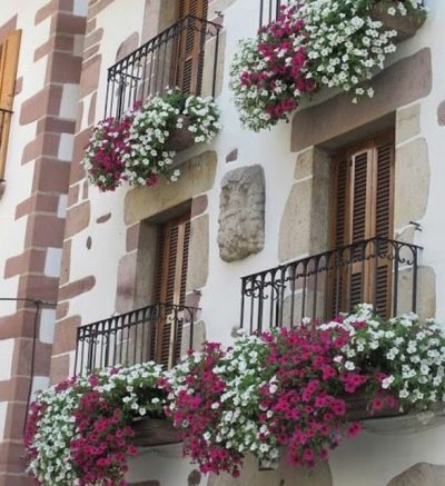 If space permits, then you can put wooden boxes and plant beans, herbs or tomatoes in them. Flowers can be arranged in several tiers: put compact plants with bright beautiful flowers on top, and on the sides and bottom place climbing plants - ampelous fuchsia, morning glory and sweet peas.