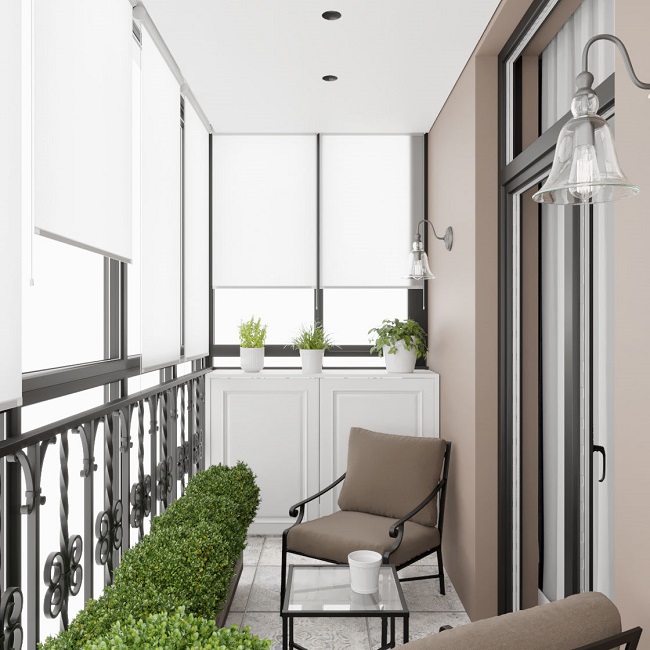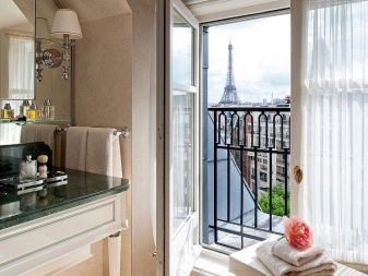 The interior decoration of the French balcony is carried out in accordance with the style in which the room is decorated. The best option would be to use natural colors and natural materials that suit most interiors.