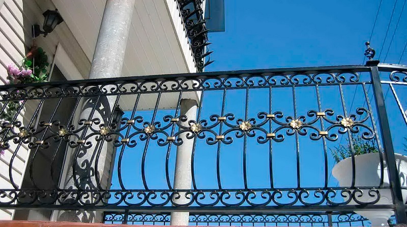 Glasses play an important role in decorating the balcony. For example, with forged fences, decorative lattices - crossbars - look great. They are available in different colors and are selected depending on the design of the facade. Versatile are models in silver, white, black and gold. They match any wall color and are in perfect harmony with a wrought-iron fence.