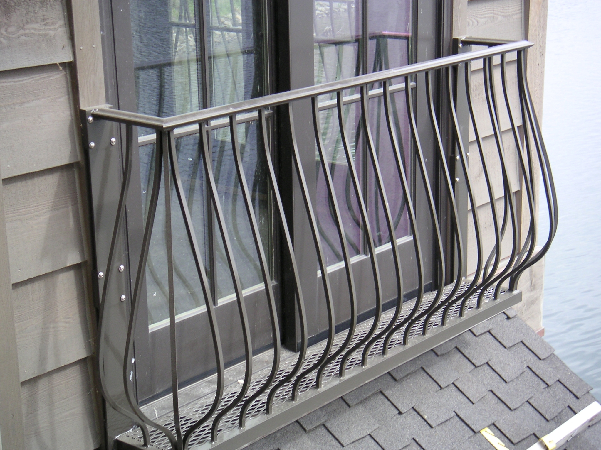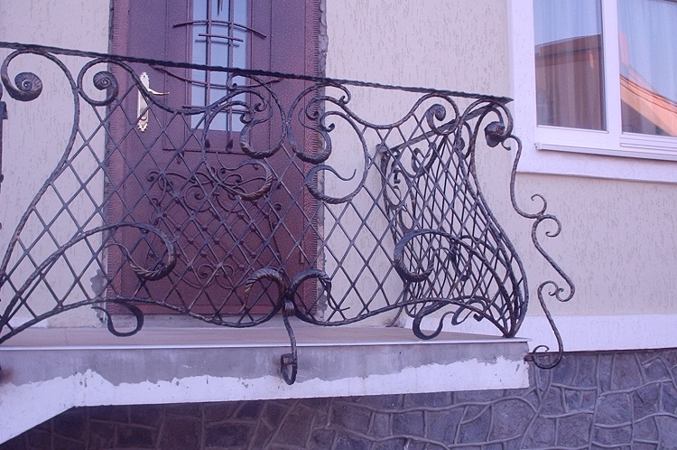 If it is not planned to erect a forged structure from the street side, then you can limit yourself to an internal decorative fence or install an impact-resistant glass unit in the lower part.