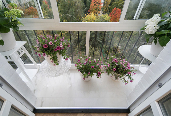 - If the balcony is on the south side of the house, then the sun quickly gets bored and begins to tire. There is a need for additional shading of the room in order to avoid premature fading of walls and furniture.