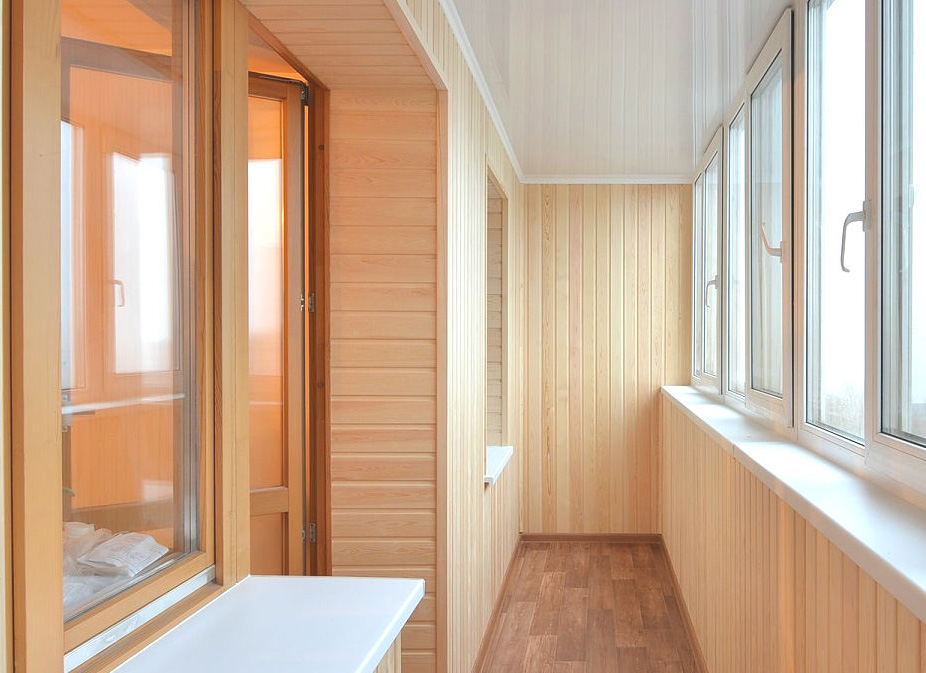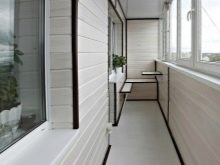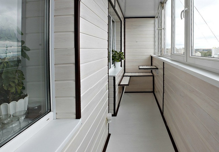 - Lining. The classic solution for interior decoration of a balcony or loggia. Eco-friendly material can be varnished, oiled, painted.