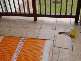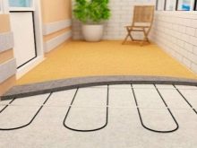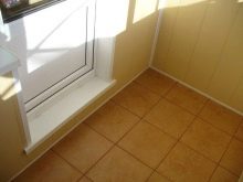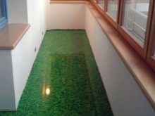 - For the floor. For open balconies without glazing, the best finishing material will be high-quality decking or tiles suitable for outdoor use. In other cases, it is possible to use linoleum, parquet board, laminate flooring as a covering, perhaps even the formation of polyurethane self-leveling floors.Warm heated options are mounted under the tiles.
