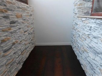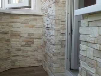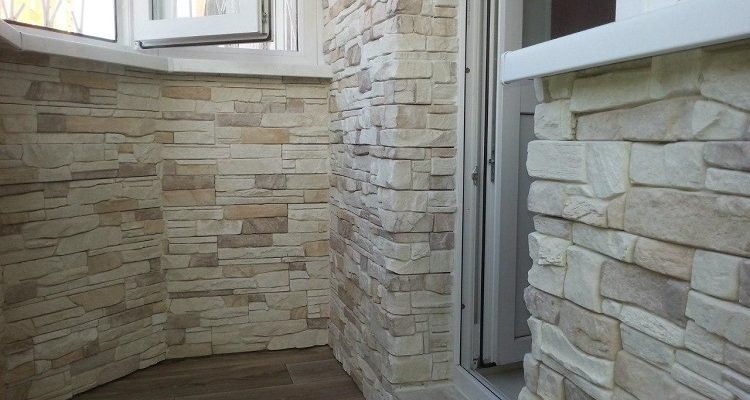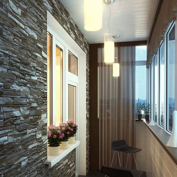 - Decorative rock. You can decorate the walls and floor in the interior of an open or closed balcony with porcelain stoneware or cement panels that imitate brick and sandstone laying.
