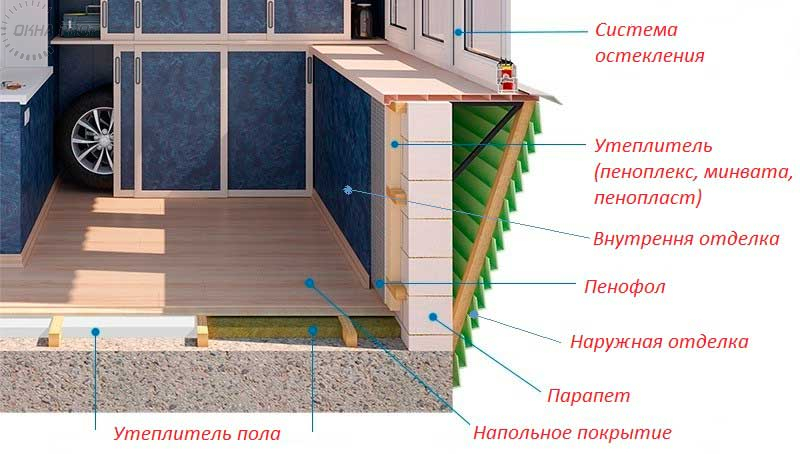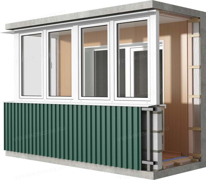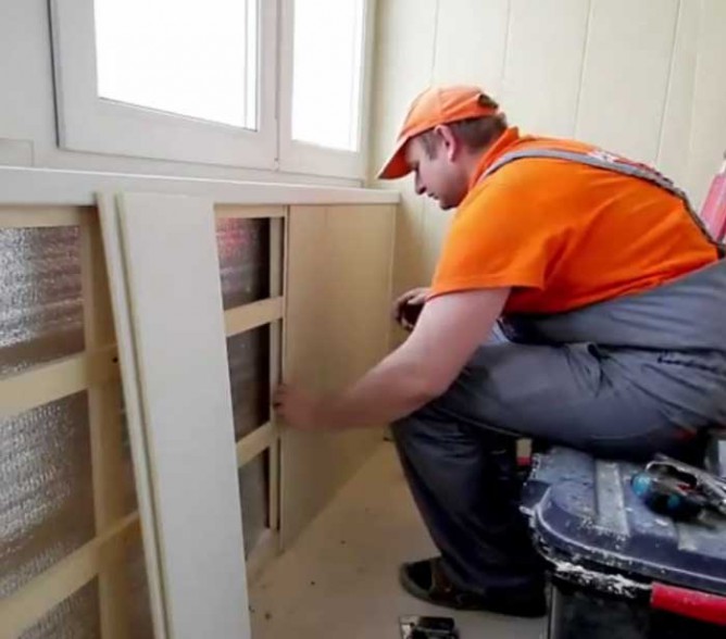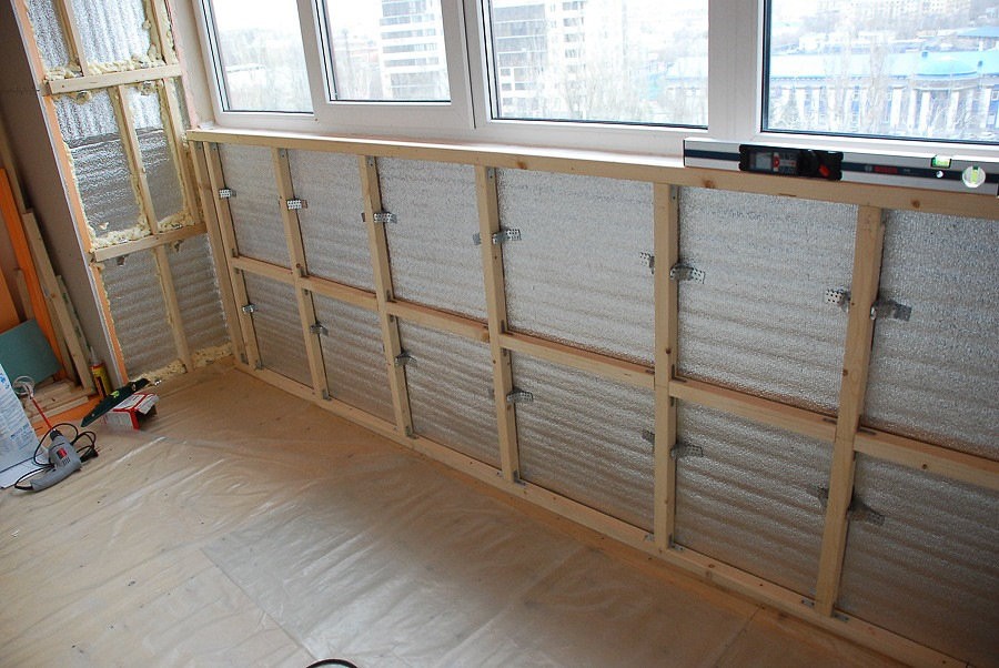 At the preliminary stage, the balcony is freed up for finishing. If the fence is damaged by corrosion, worn out, it is better to dismantle it. The surface of the slab is also leveled, repaired if there are defects. It is better to start the inner lining with insulation. In the frame of the lathing, plates of a thermal insulating layer, a vapor barrier are installed, then the internal walls are formed.