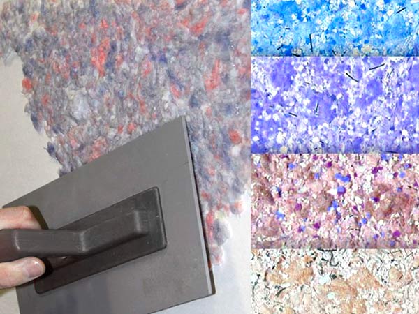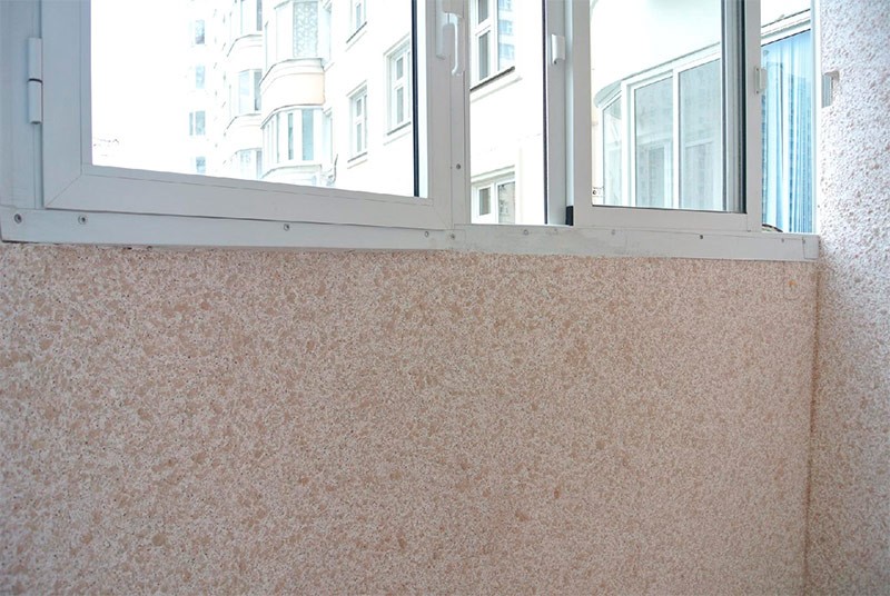 - The liquid wallpaper. This type of composition is similar to plaster, suitable for decorating glazed warm balconies. It is decorative, in a frozen state it resembles foam plastic, foamed vinyl. Liquid wallpaper is applied to a pre-leveled wall with a spatula or trowel.