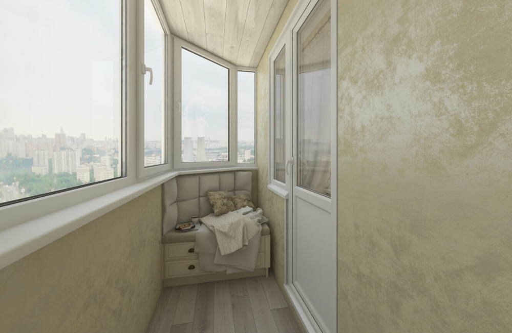 Choosing any of the specified finishes, you can easily solve the problem of turning a balcony into a stylish relaxation space, home office or gym.