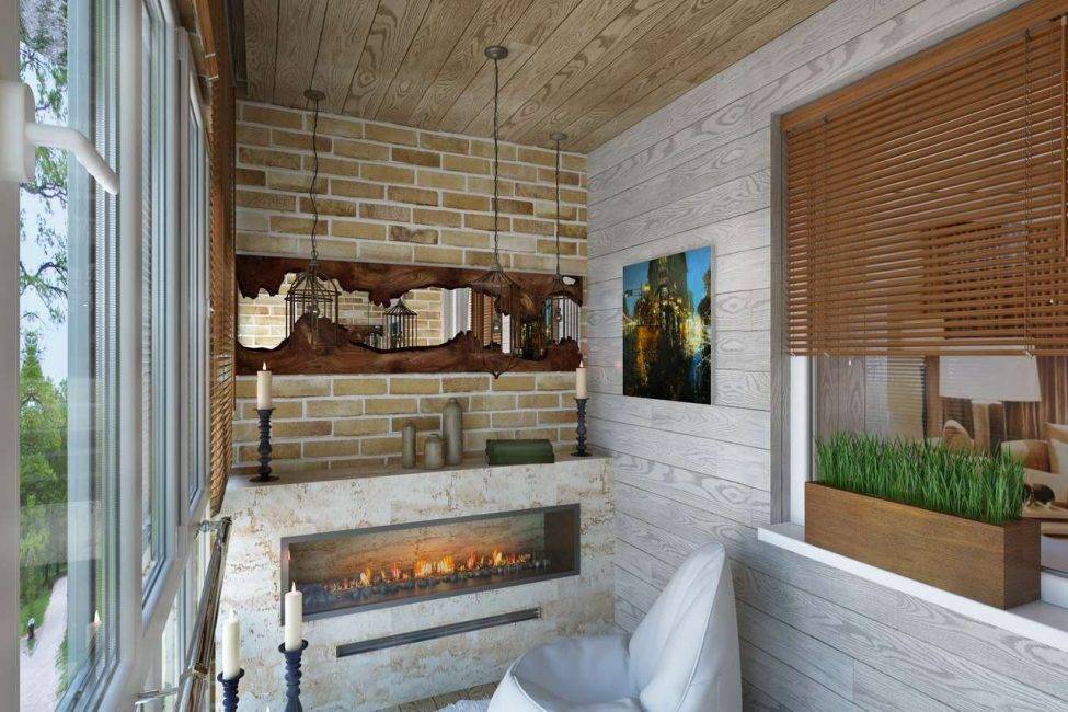 - Laminate and artificial stone on the walls, biofireplace and soft bean bags... Even on a miniature balcony, you can create a cozy space for romantic evenings.