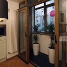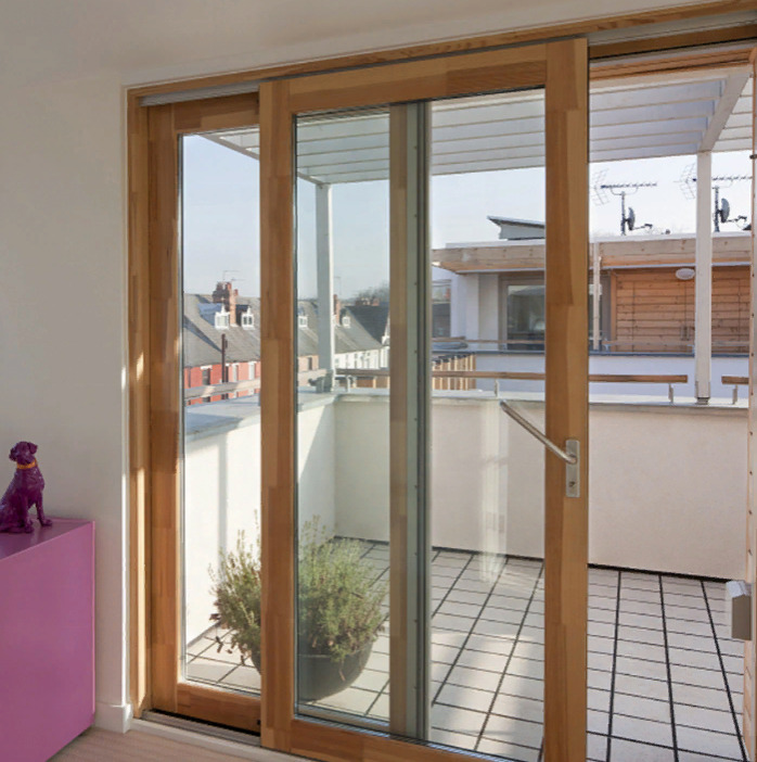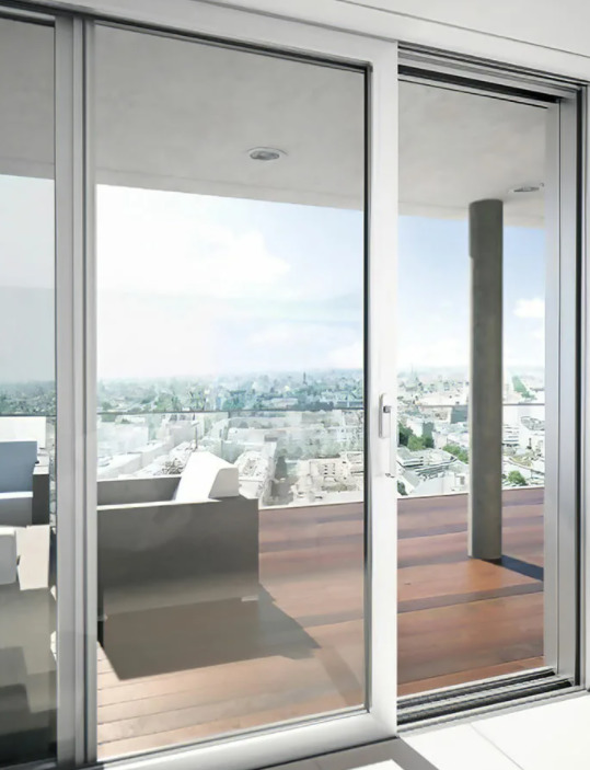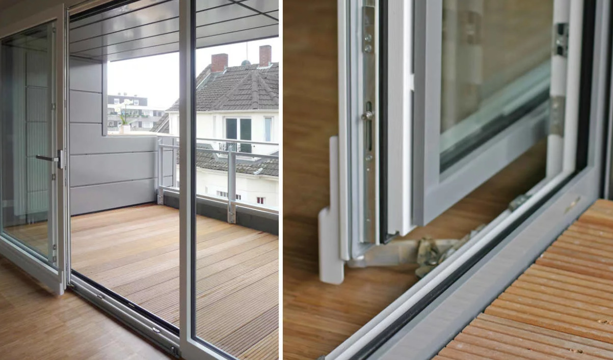 When the lift doors are opened, they first rise and then move in different directions. One sash seems to hang over the other a little. This design is well suited for balconies with wide door openings.