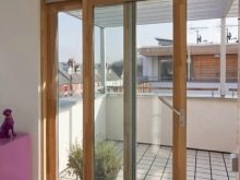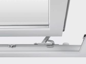 Sloped designs are great for any balcony. They can be opened to the maximum or ventilated by opening a small window. If you press the door handle, it will slightly lower and form a flap. Fresh air will flow through this flap. If you turn the handle to the side and pull, then the structure will open slightly to the side, parallel to the second sash.